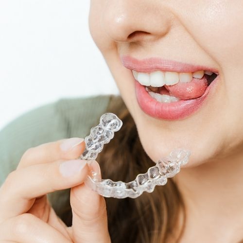 Invisible aligners are transparent, detachable trays that straighten teeth without the need for metal braces.